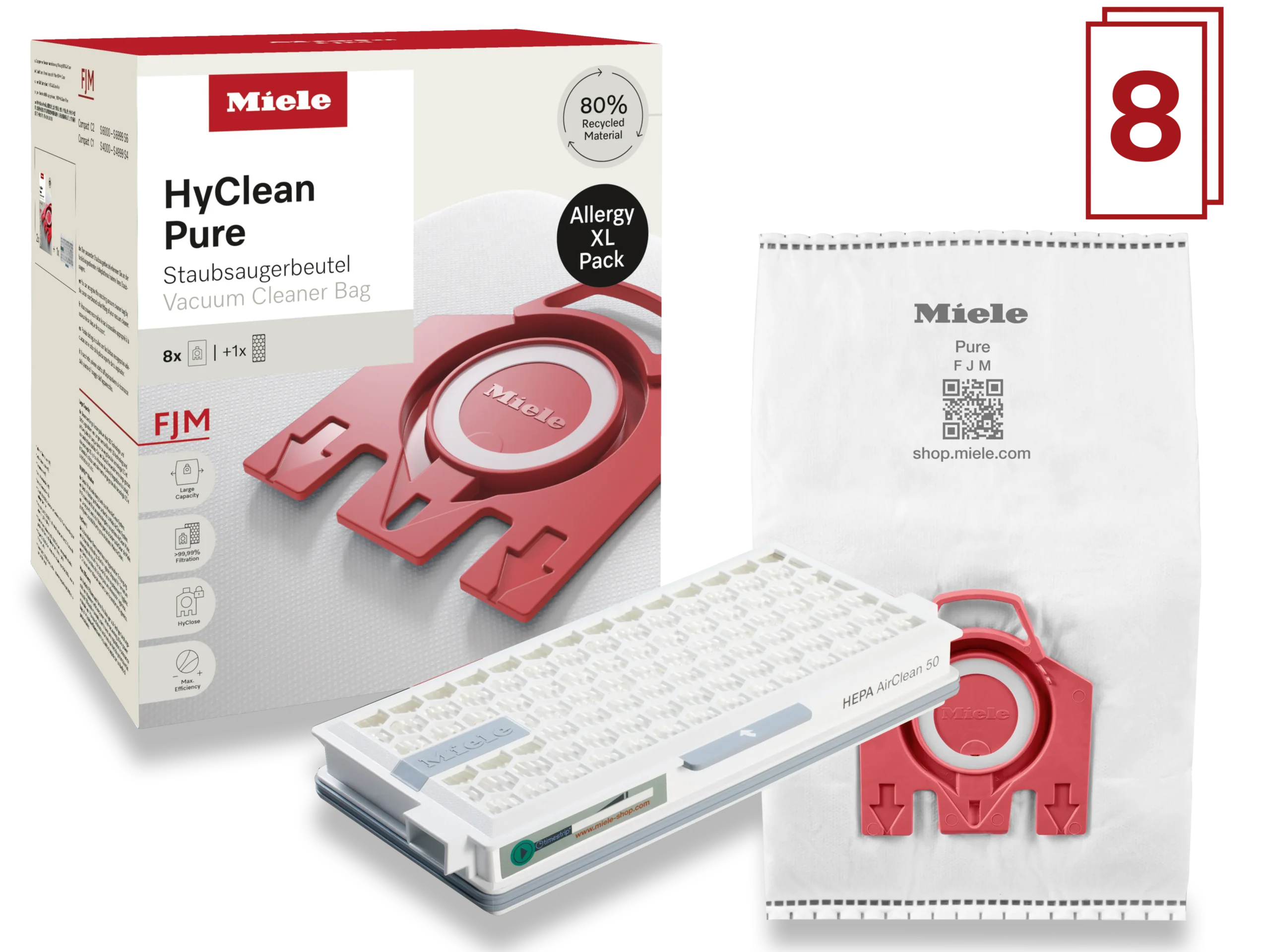 Originálne príslušenstvo Miele, ako je táto súprava 8 prachových vreciek a HEPA filtra, zaručuje 100 % kompatibilitu a maximálnu ochranu vášho spotrebiča. Použitím originálnych dielov si zaistíte dlhodobú a bezproblémovú prevádzku vášho vysávača Miele.