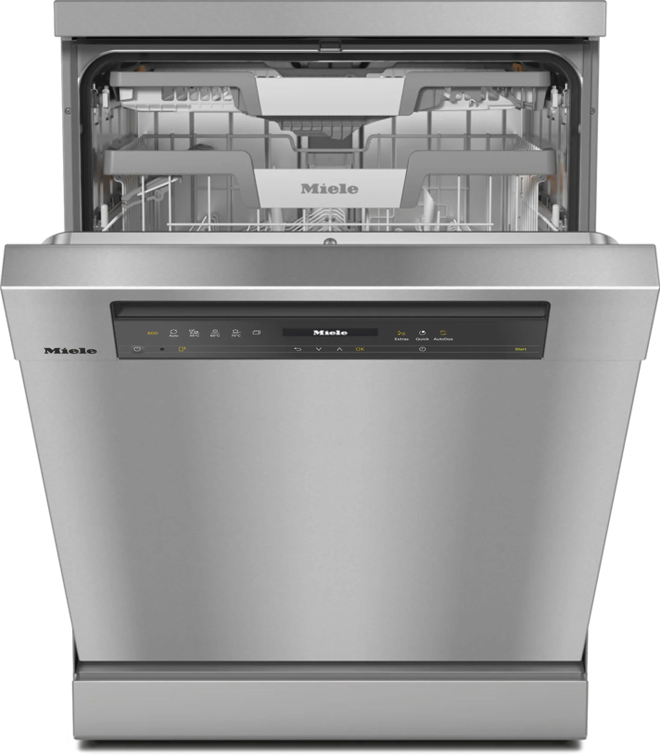Miele G 7600 SC AutoDos Nerezová oceľ/CleanSteel prináša zásadnú zmenu v umývaní riadu vďaka automatickému dávkovaniu AutoDos, ktoré zabezpečuje optimálne množstvo čistiaceho prostriedku pre dokonalé výsledky. S hlučnosťou len 42 dB si užijete tichú prevádzku, zatiaľ čo program Hygiena 75 °C garantuje bezchybnú čistotu aj pre tie najnáročnejšie potreby. Miele testuje každý spotrebič na 20 rokov používania.