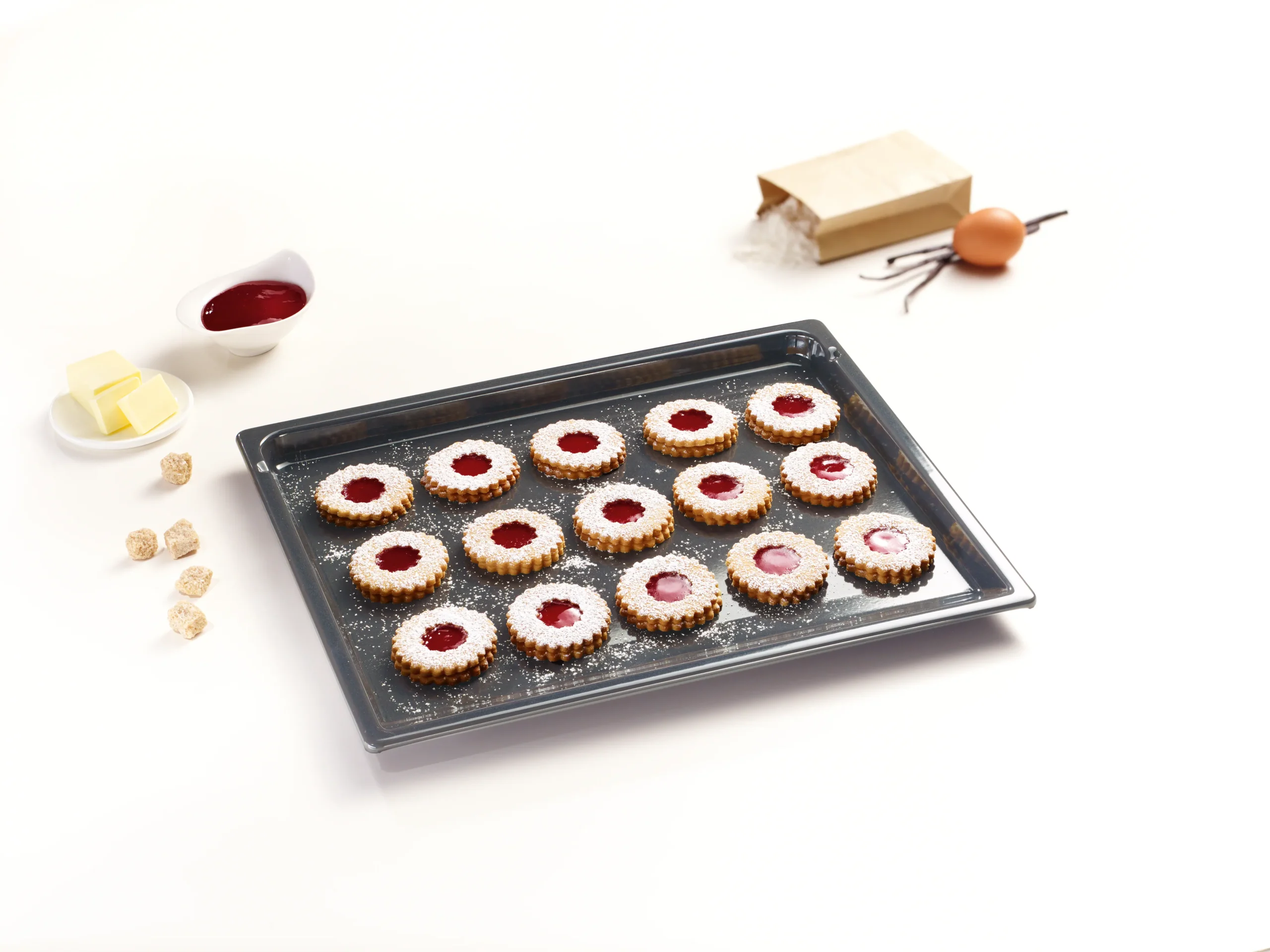 - Ideálny na pečenie sušienok, jemného pečiva a tenkých koláčov priamo na plechu.